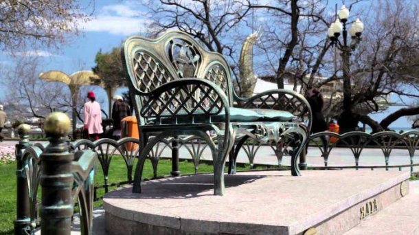 На набережной Ялты установлена «Скамья влюбленных», а украшают романическое место образы голубей и небольших сердечек.